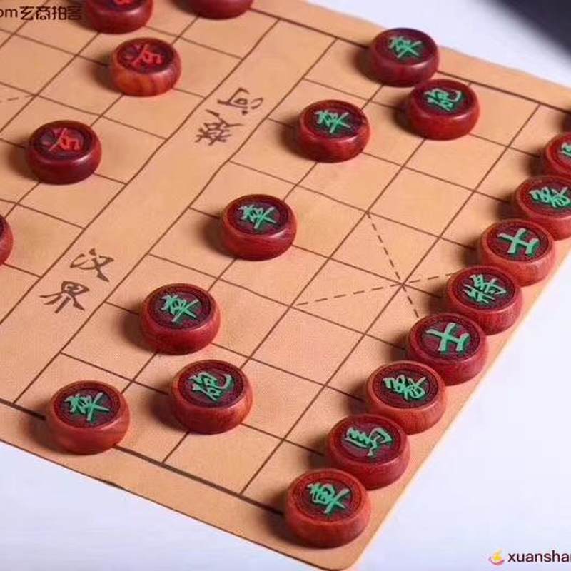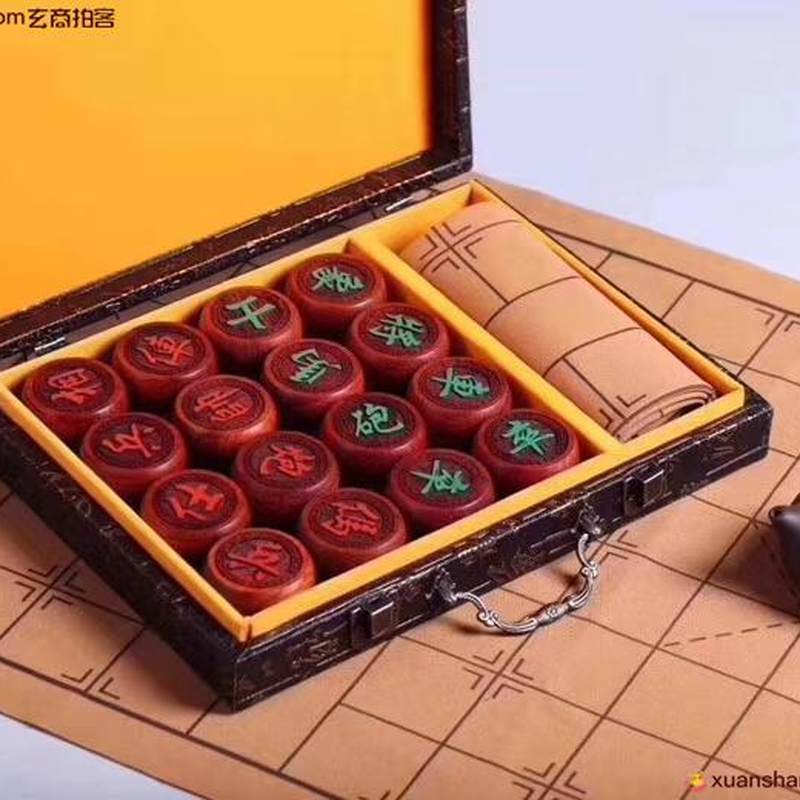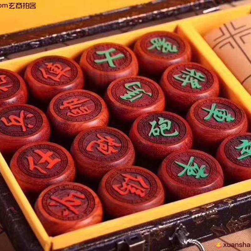 红花里 中国象棋 纯手工打磨,配锦盒,和羊皮纸。尺寸4.8厘米。