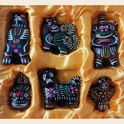 泥泥狗又叫陵狗(灵狗),是太昊伏羲陵泥玩具的总称,因它是纪念伏羲、女娲抟土造人育万物而制作的,又为淮阳太昊陵所独有,所以被誉为“天下第一狗”。其做工有的精致细腻、有的粗狂简括、生动活泼、栩栩如生。被海内外专家、学者赞誉为:活文物、真图腾、活化石。泥泥狗是给人祖伏羲氏守陵、报警和传播人祖圣德于四方的象征。游人香客只有请到出自太昊陵的泥泥狗才有灵气,它能使龙的子孙避邪消灾、增福增寿!因此它是收藏或馈赠亲朋好友的吉祥之物!!! 六神兽:人祖猴、马上封侯、独角兽、草帽老虎、灵狗、燕尾猴