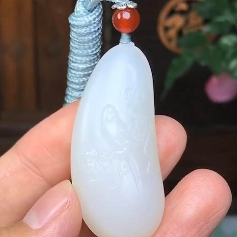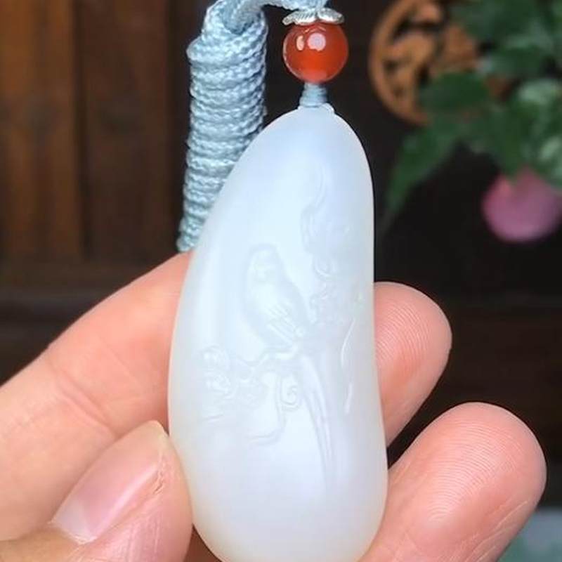 【喜上眉梢】精选和田玉白玉挂件 玉质细腻油润精工雕刻。重19克 尺寸45-20-11mm。