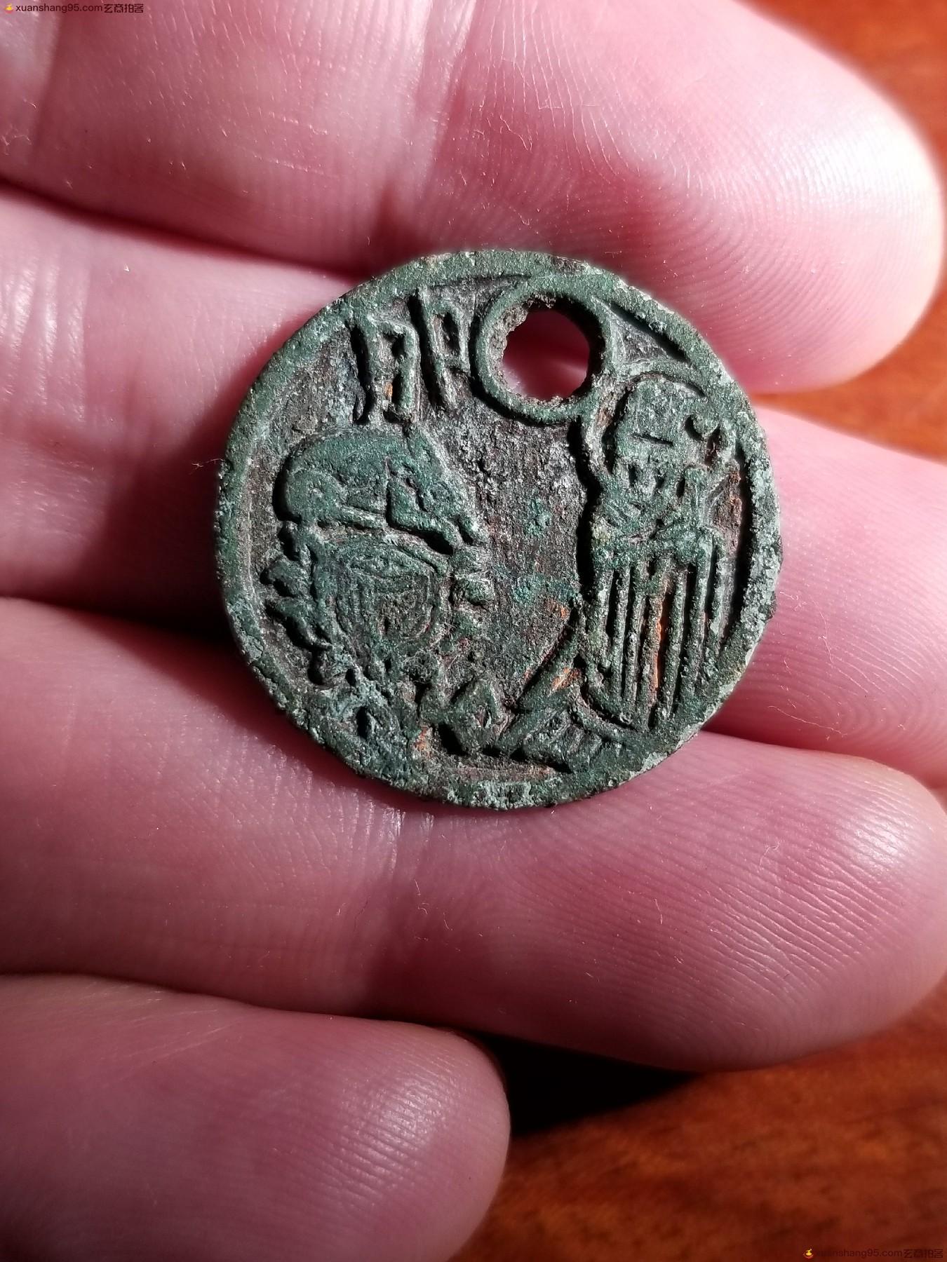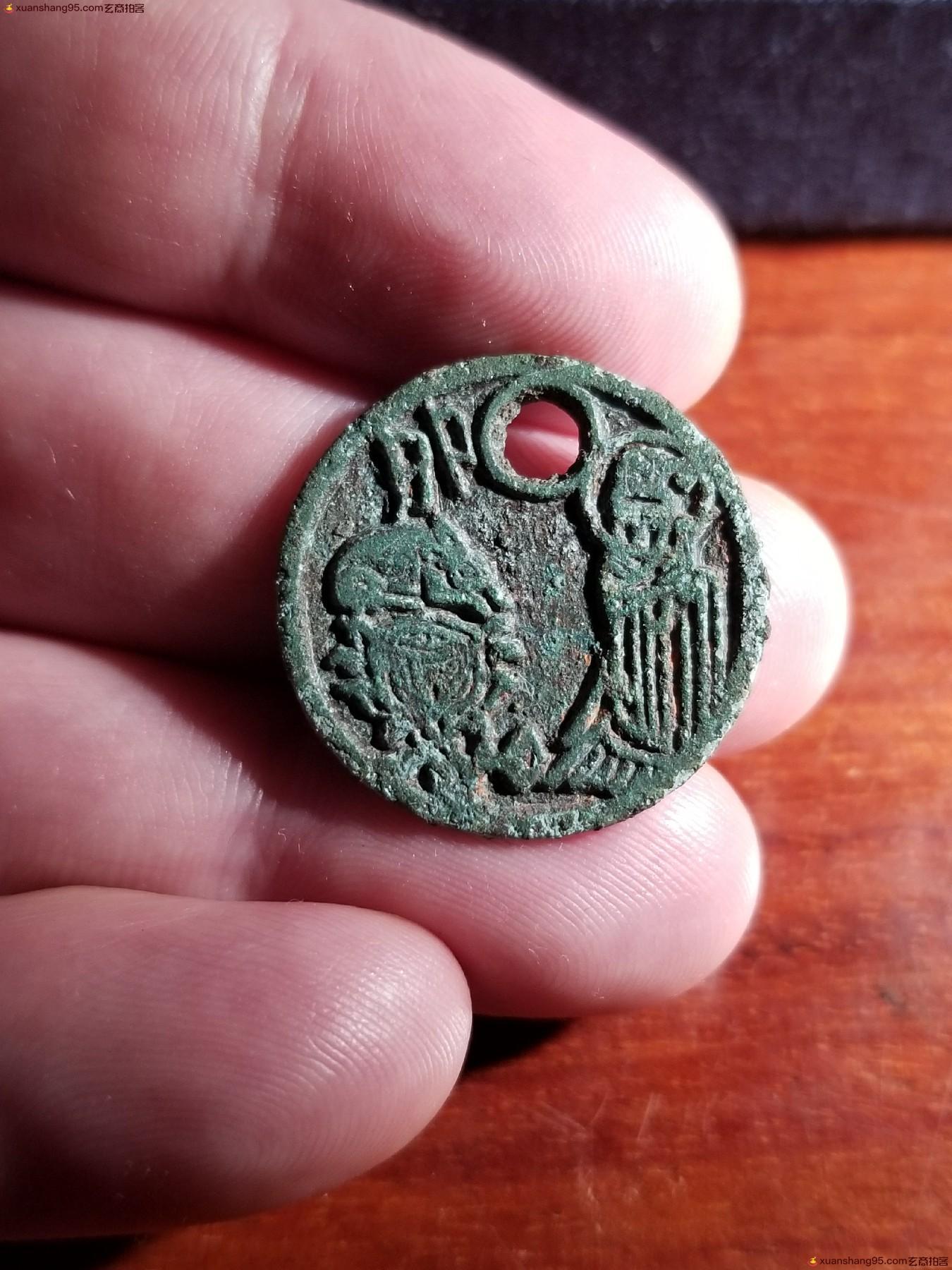 这枚“卯”兔星官背符文花钱是宋代十二生肖套花中的一枚,生坑绿锈,字口高挺,品相很好。十二生肖与地支相配自汉代开始定型,王充在《论衡》中即有所论述,隋唐铜镜上出现了生肖题材,到宋代十二生肖压胜钱被广泛铸造和使用。其作用是驱邪压胜,佩戴可作为护身符起到护佑作用。