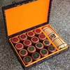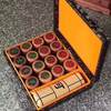 缅甸花梨木 象棋 纯手工打磨 配锦盒 羊皮纸 直径4.8厘米。