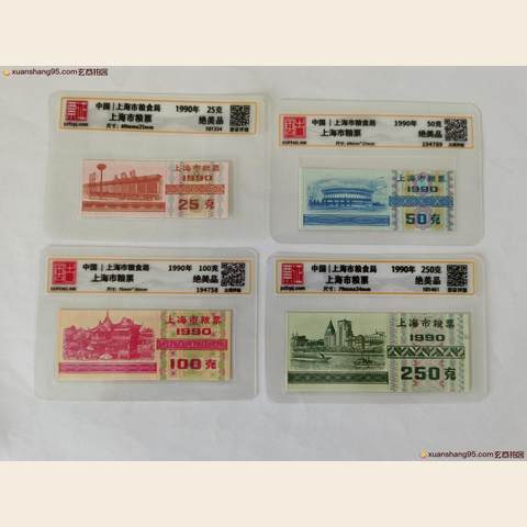 3. 竞拍详细 - 1990上海市粮票4全 评级票 *美品