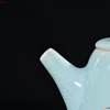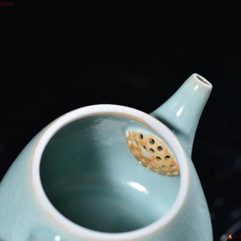 汝瓷 天青釉 旅行壶 设计巧妙,工艺精湛,采用汝州本地天然原矿石,研磨精工制作而成,做工一流,设计巧妙,杯内上满釉,开片精美,收藏使用佳品。壶尺寸12*9*9厘米 杯子尺寸 6*5厘米 茶叶罐 尺寸7*7.5厘米。