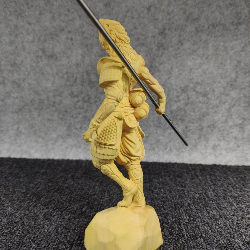 黄杨木 大圣,尺寸16*8*5厘米。金属金箍棒,人生百年,谁不曾大闹天宫,谁不曾头上紧箍,谁不曾爱上层楼,谁不曾孤单上路。曾离我们仅一步之遥的人,一旦错过,之后哪怕化身绝世英雄,身披金衣金甲,脚踏七彩祥云,一跃十万八干里,也未必能追得回来。三生有幸遇见你,纵使悲凉也情。