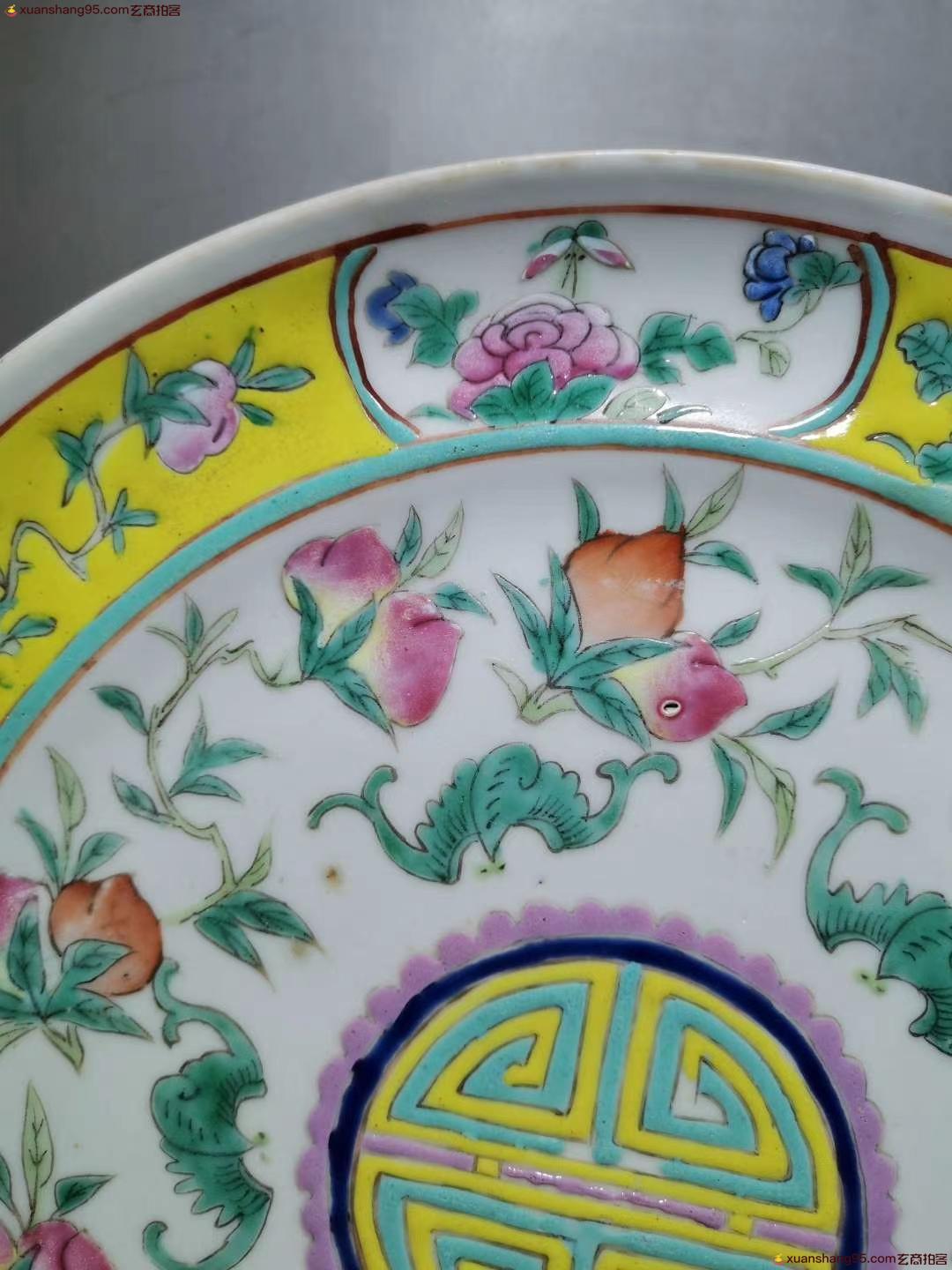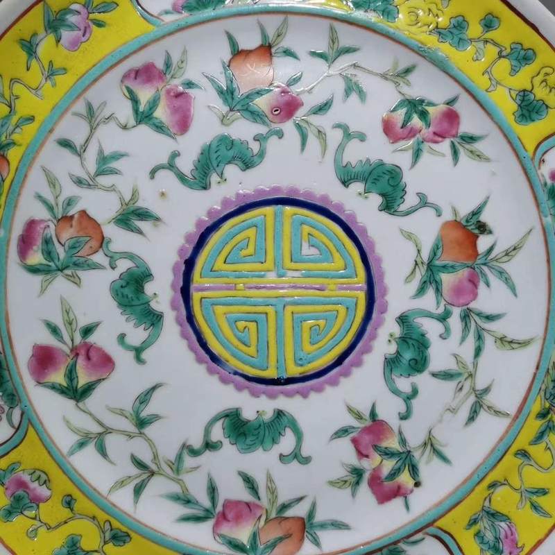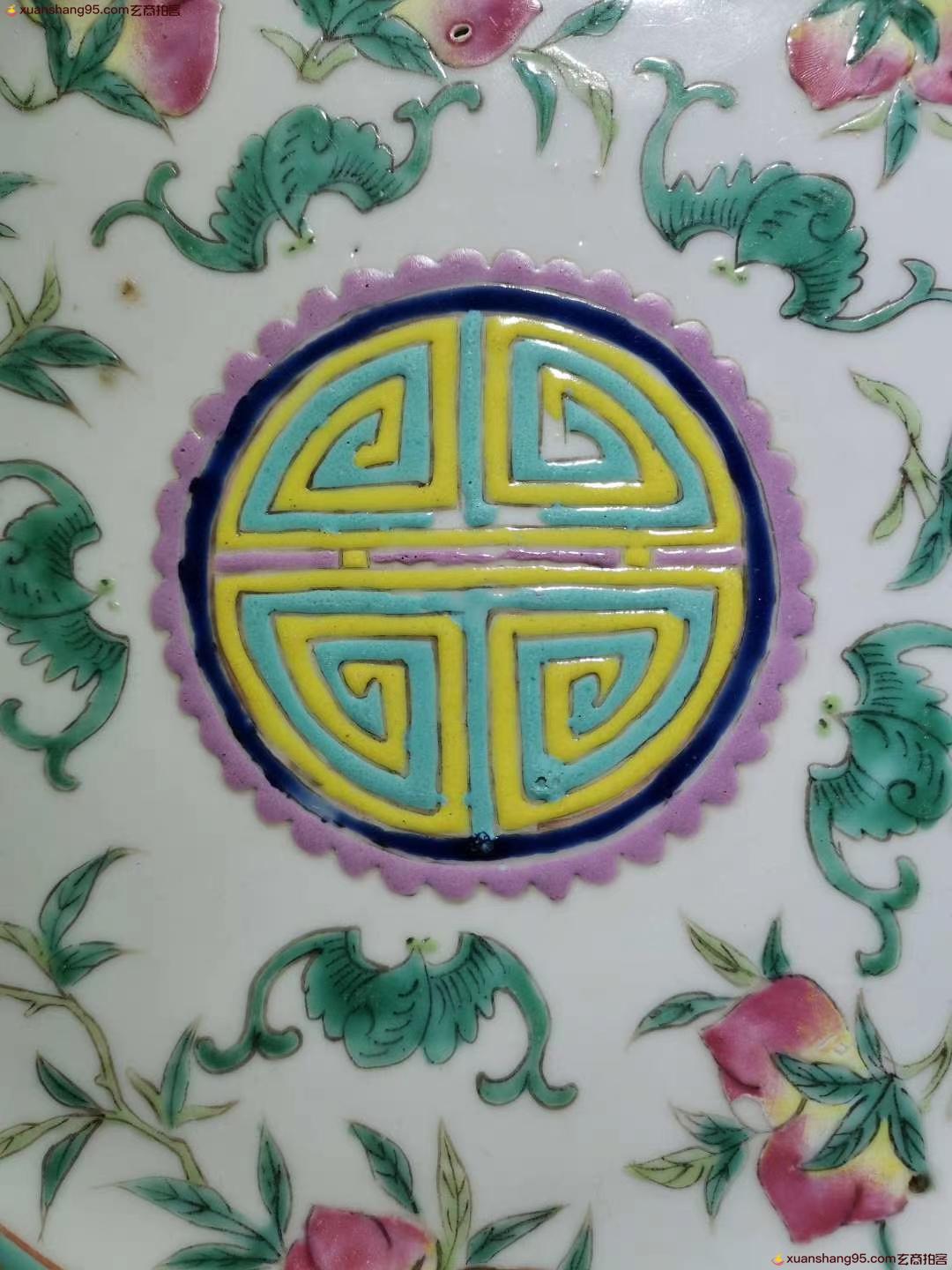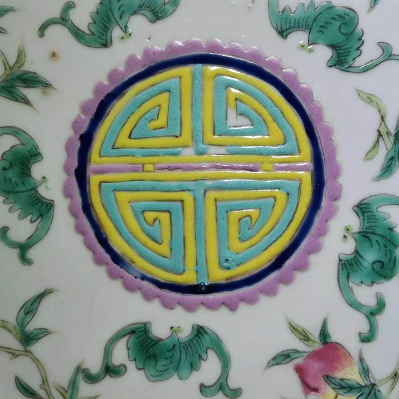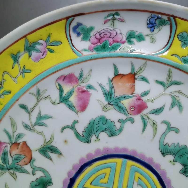 粉彩寿桃大盘 ,画工精细发色漂亮,口有个很小很小的线,其余全品,直径24cm。