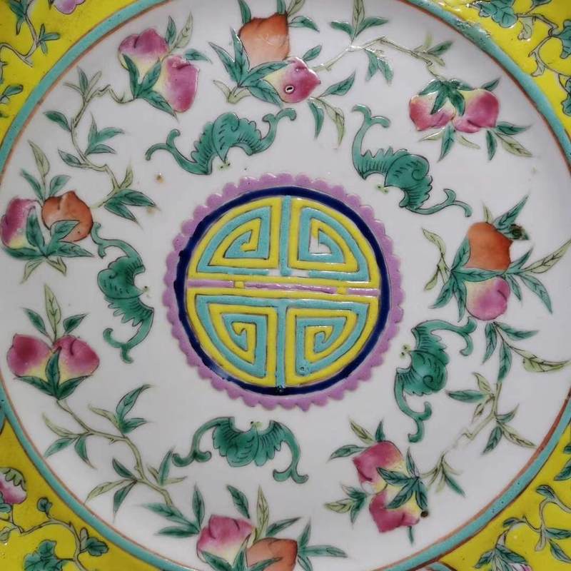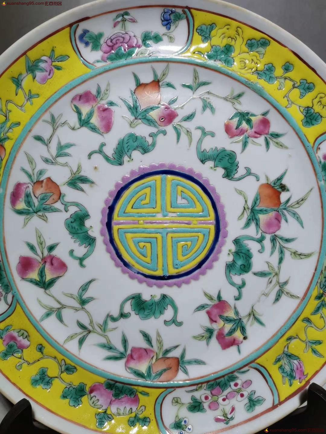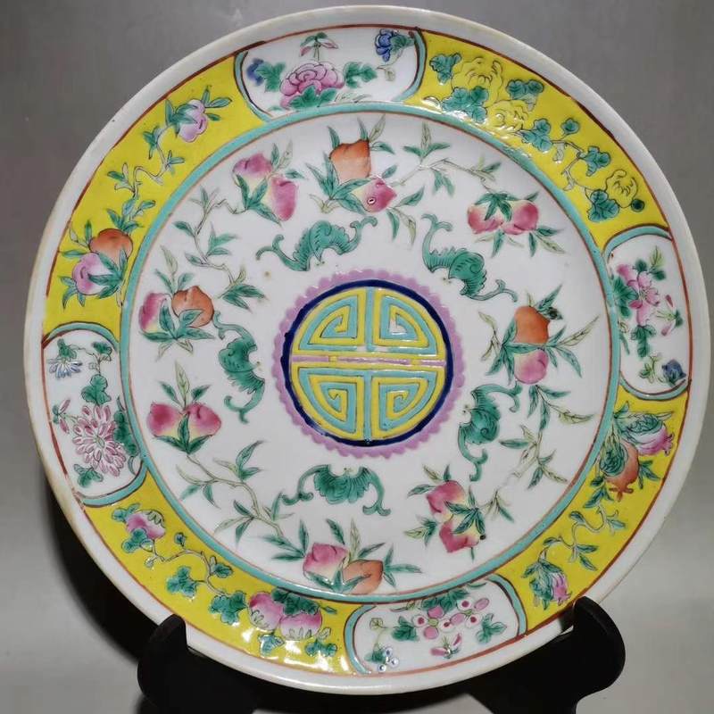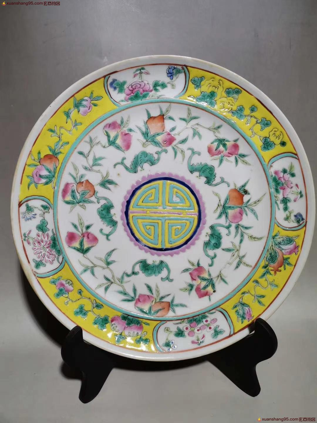 粉彩寿桃大盘 ,画工精细发色漂亮,口有个很小很小的线,其余全品,直径24cm。