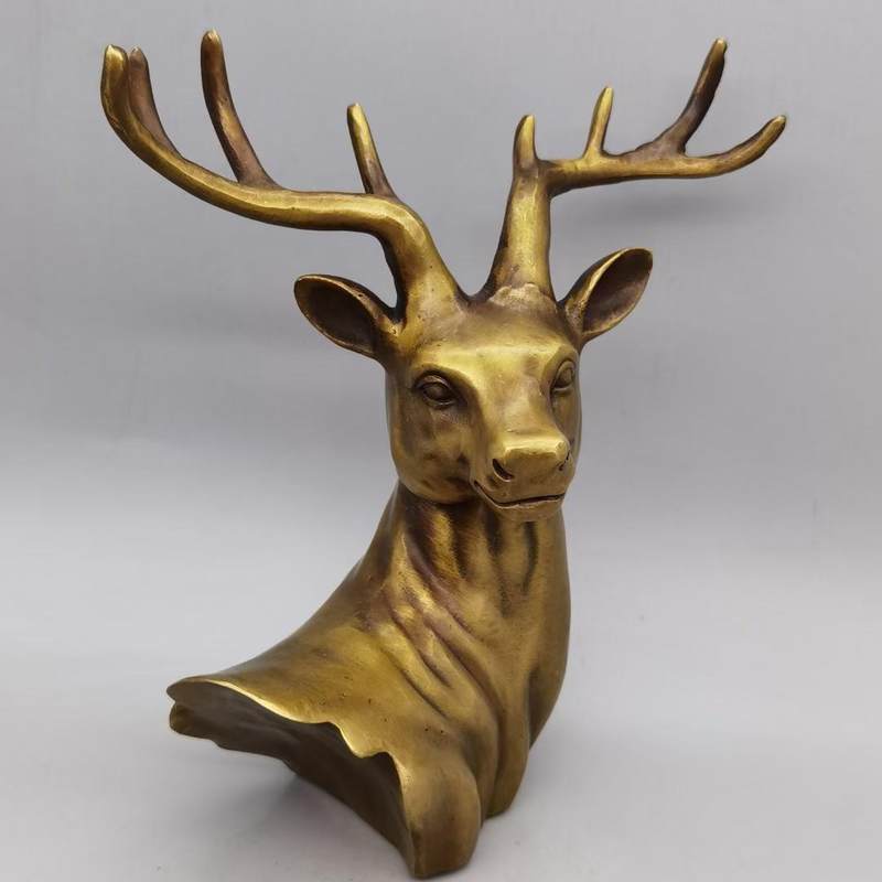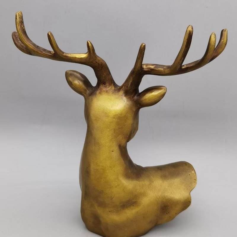 纯铜 鹿头摆件 工艺精湛 包浆厚重 保持完整。尺寸22*20厘米。