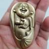 弥勒信仰在我国历史悠久,唐宋时期,逐渐将弥勒佛像转化为大肚翩翩,手持布袋,大笑视人的布袋和尚形象,给人们带来乐观与宽容;包裹的荷叶象征着团圆与和善,这些共同构成了这枚寓意美好的一品文玩。 荷叶弥勒 铜章采用特殊工艺制作完成。 由沈阳造币有限公司铸造,*设计师廖博设计。 图案主体为椭圆形,荷叶包裹中弥勒大笑着呼之欲出,顽皮可爱。 弥勒把件铜章长度65毫米,宽度48毫米,厚度14.5毫米,材质黄铜,发行量2000枚。