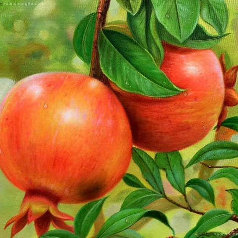油画名家 方国彬 《石榴图》