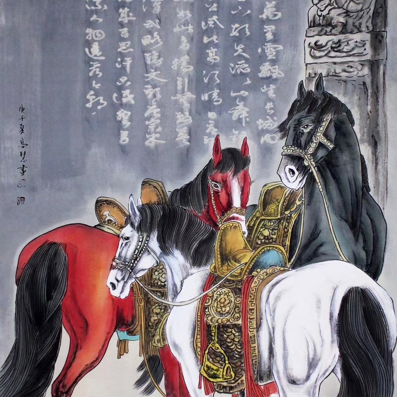 中国工笔学会会员 高慧 《工笔马》