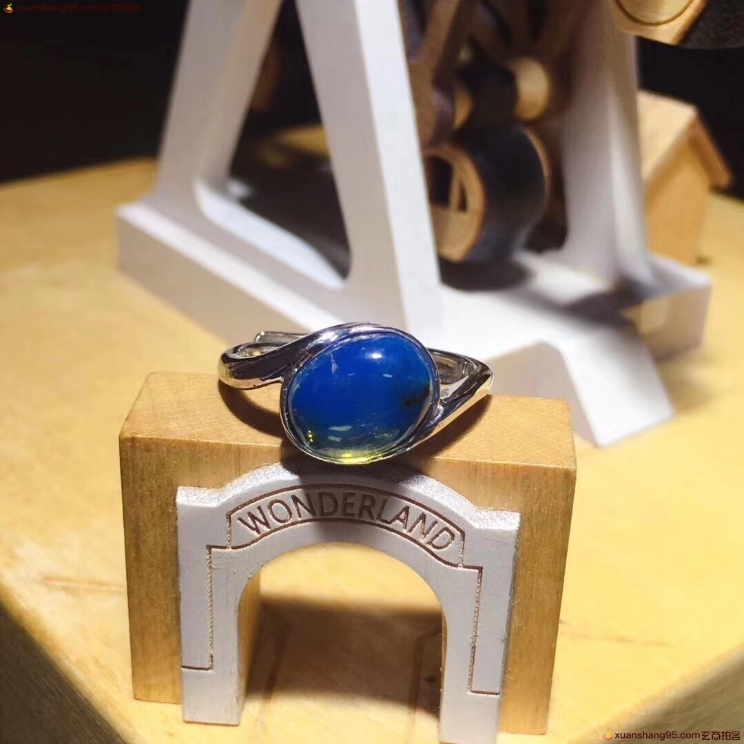 *品 多米尼加蓝珀 戒指 纯银镶嵌 品质如图 佩戴佳品。尺寸9.5*7.5*6毫米。