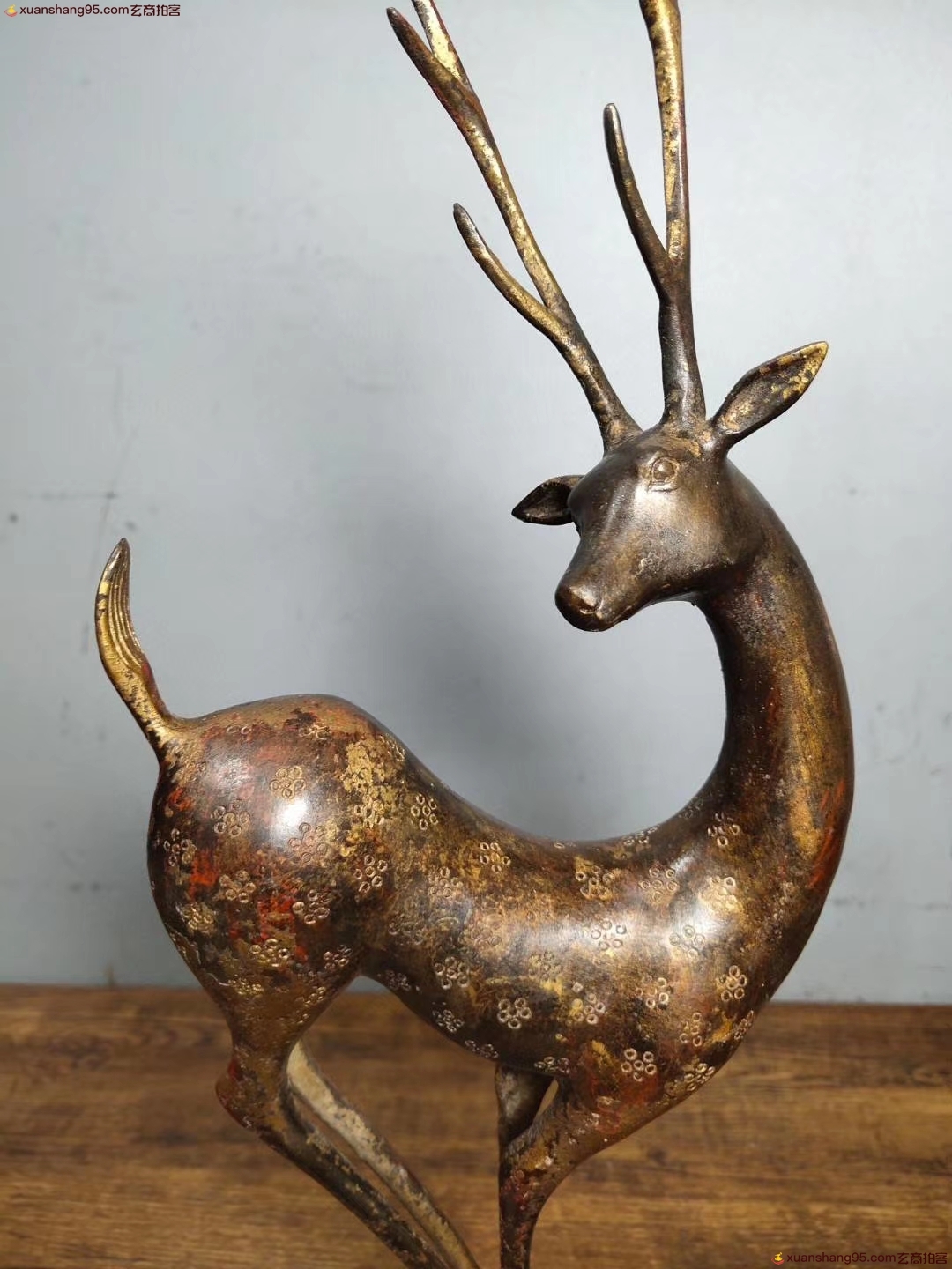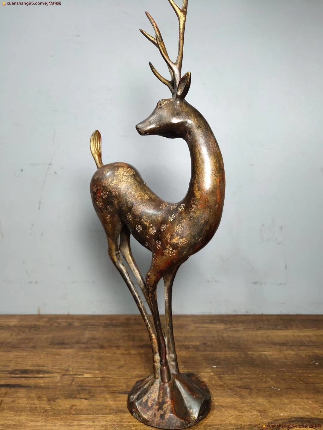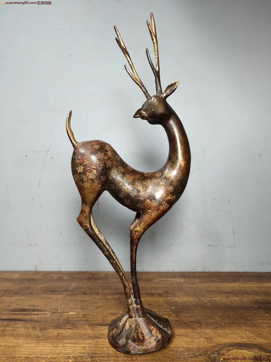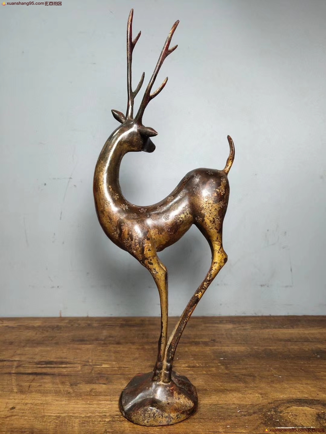 铜 梅花鹿 生财有禄 招财进宝 品相如图 高38厘米 长13厘米 宽7.5厘米 重量1220克。