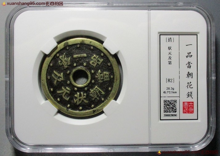 备注:此枚清代花钱已入盒,如图所示,品相良好;