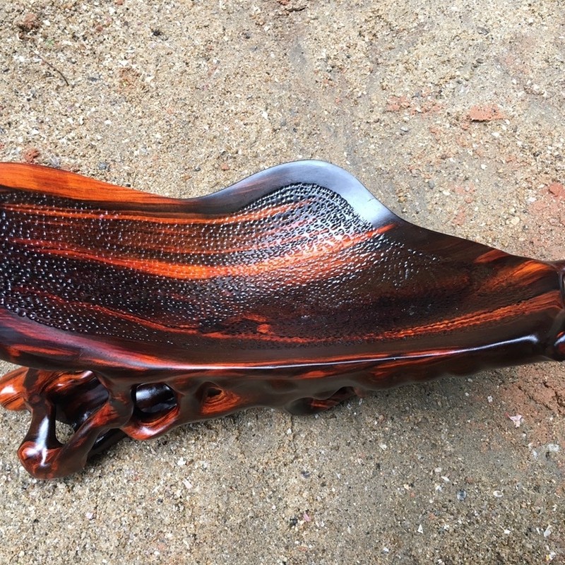 精选 老挝大红酸枝 树头 果盘,高密度老料,黑飘红,纹理非常漂亮,造型奇特,*高性价比。尺寸:长43.5厘米 宽20.5厘米 高21.3厘米 重量:6.21斤