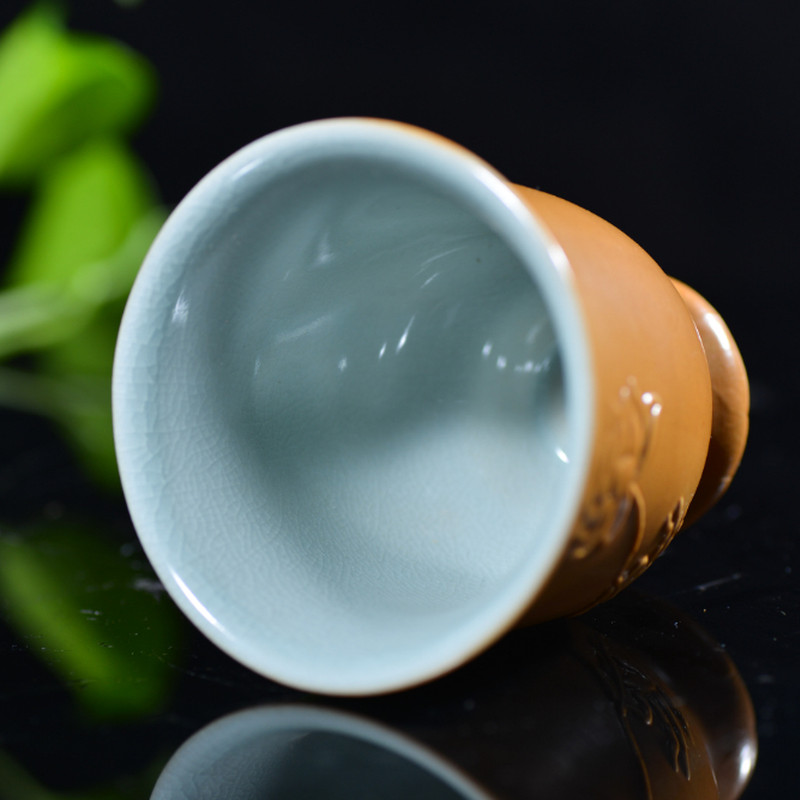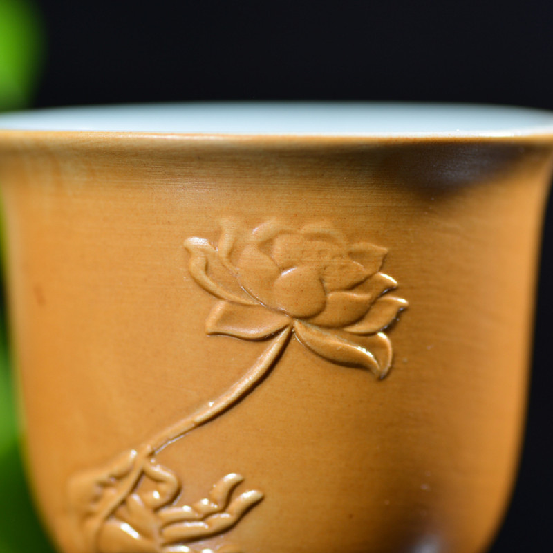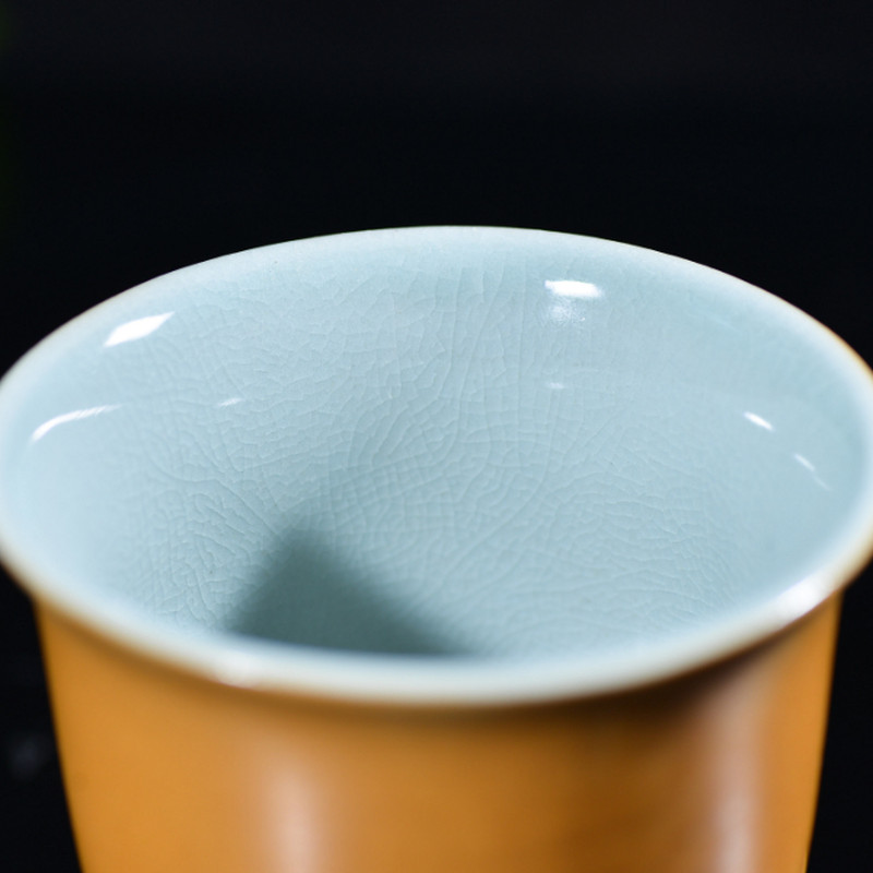 汝瓷 莲花 主人杯杨聚斌 采用汝州本地天然原矿石,研磨精工制作而成,做工一流,设计巧妙,杯内上满釉,开片精美,收藏使用佳品。尺寸7.5*7.5厘米。