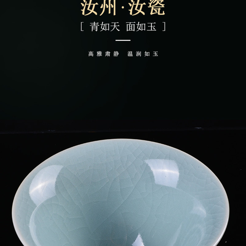 中国四大名瓷汝瓷 斗笠主人杯 手工制作 经典器型 开片精美 收藏实用佳品。作者杨聚斌老师 直径7厘米 高5厘米 附带收藏证书。