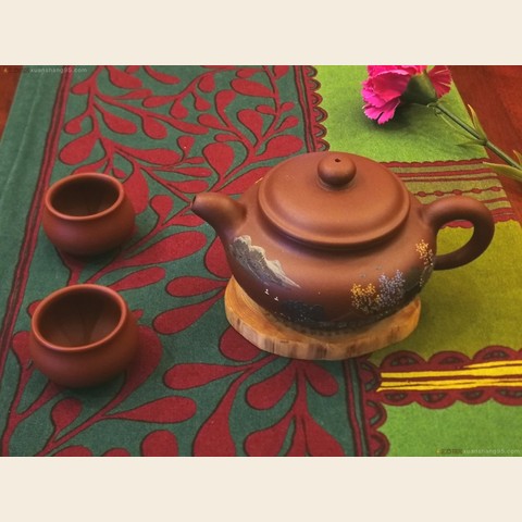 400倍高倍金相显微镜下壶内的情况,真假一目了然:手工的迹象以及紫砂的微孔,印章的印记。