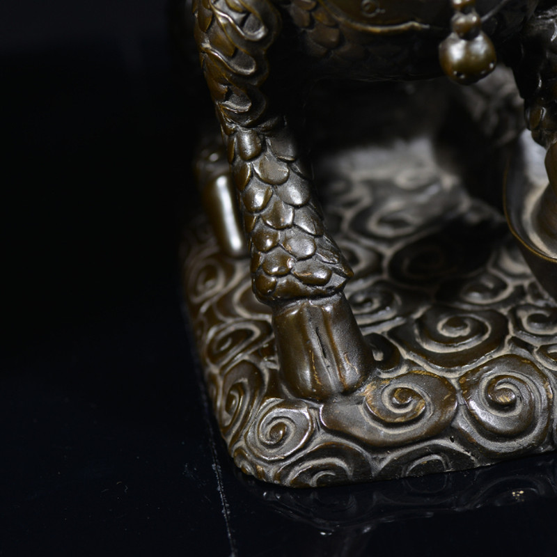 青铜器的颜色真正做出来的时候是很漂亮的,是黄金般的土黄色,因为埋在土里生锈才一点一点变成绿色的。由于青铜器完全是由手工制造所以没有任何两件是一模一样的,每一件都是独一无二、举世无双的。
