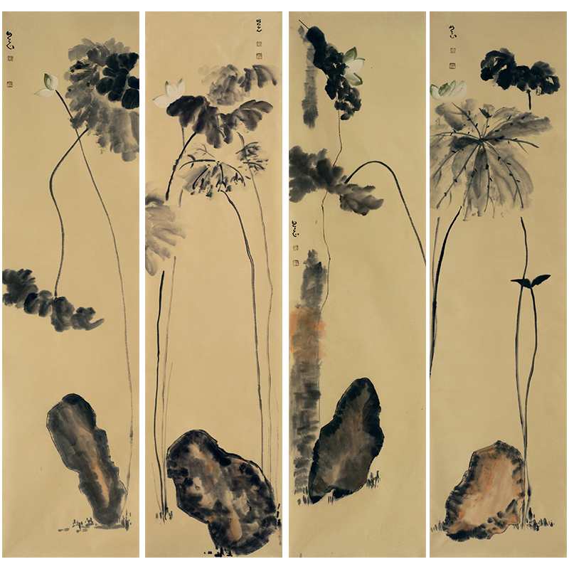 3. 竞拍详细 - 当代名家 吴心《荷花四条屏》精品
