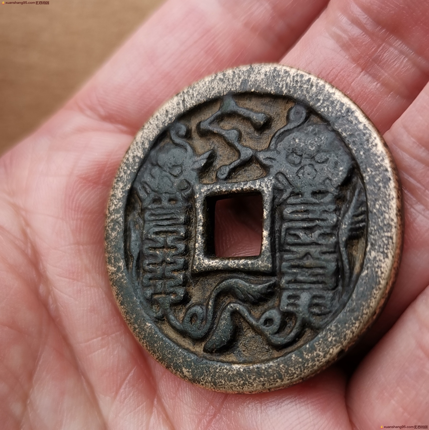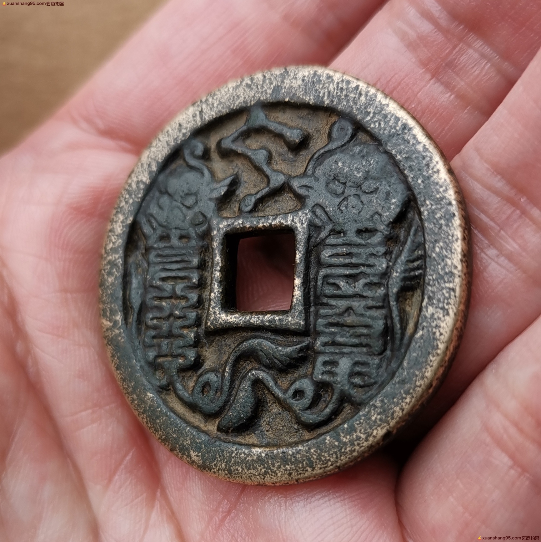 备注:此枚花钱由业内知名专家老师刘源收藏,包浆自然老辣,风格特征明显、品相如图,有金之气质,题材稀缺,值得收藏;