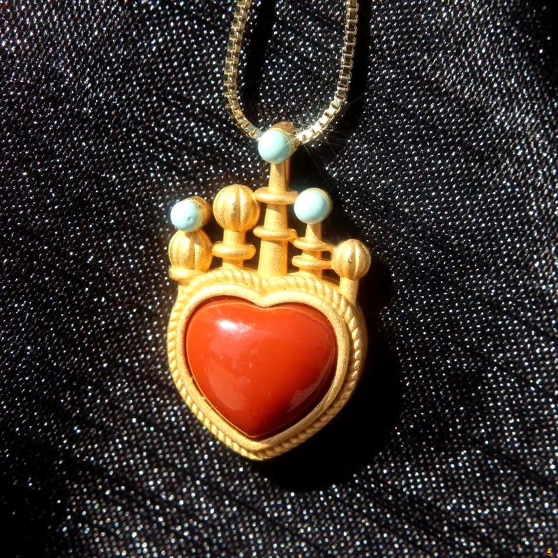 【爱的城堡】南红吊坠,高品质低价格,纯银古法金镶嵌,完美品质,重4.6克,尺寸约:16*26*8.7mm佩戴大气精致呢