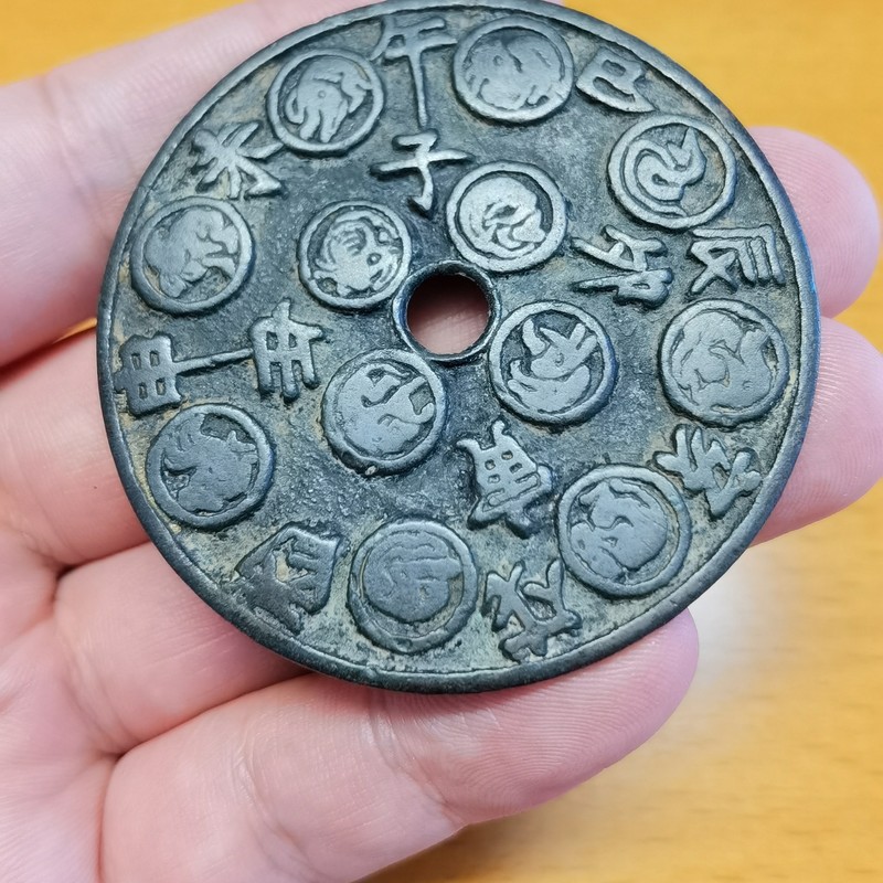 寿星背十二生肖,径55.2mm,厚2.2mm,完整无缺陷,品种稀少,《寻花问泉》第230页序号275同款。头模包浆温润,风格特征明显,推荐珍藏。