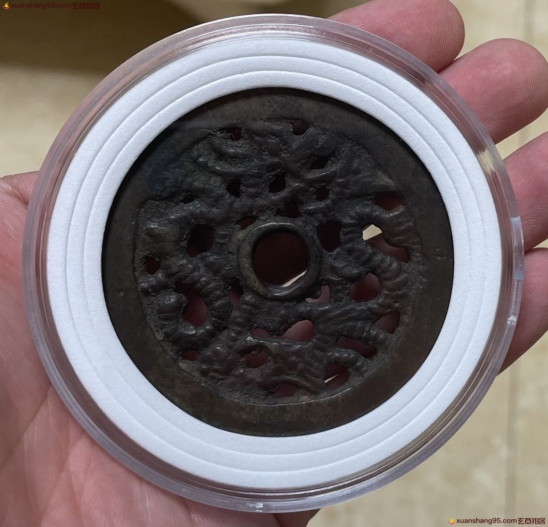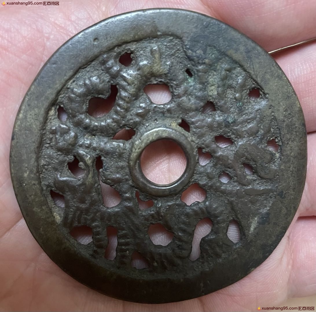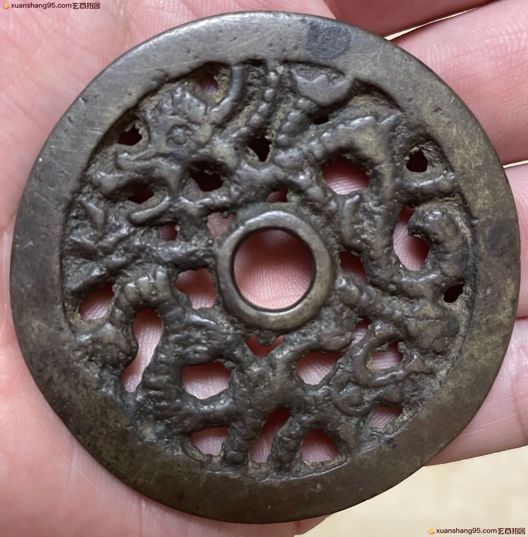 花钱是中国民间自娱自乐的一种玩钱,百姓把这种钱俗称为“花钱”、“压胜钱”。“花钱”虽然具有钱币的形态,但不作流通使用,是专供开炉、镇库、馈赠、祝福、辟邪、玩赏、戏作、配饰、纪念、生肖等等不同需要的辟邪品、吉利品、纪念品,渗透着中国民俗文化的独特魅力。镂空花钱是花钱中工艺水准最高的一种,常用于婚嫁喜庆之时,因结构纤细,保存困难,留下来的多有断缺,保存完好者少,有“十镂九裂”之说。本币为镂空双龙,喜欢的朋友不要错过。