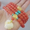 甄选 南红 手串, 料子细腻 颜色红润 收藏佩戴佳品 搭配蜜蜡配饰 时尚精致。尺寸7毫米 重量63克。南红玛瑙是玛瑙的一个种类,*称"赤玉",质地细腻油润,是中国独有的品种。由于*量稀少,南红玛瑙*格急剧上升。南红玛瑙曾被*人用之入药,养心养*。南红玛瑙的应用历史悠久,在出土的*国贵族墓葬中已经有南红玛瑙的串饰了,如云南博物馆馆藏有*滇国时期的出土南红饰品,北京故宫博物院馆藏的**南红玛瑙凤首杯更是精美,是研究南红玛瑙制品、南红玛瑙雕刻件等,宫廷碾玉的实物资料,