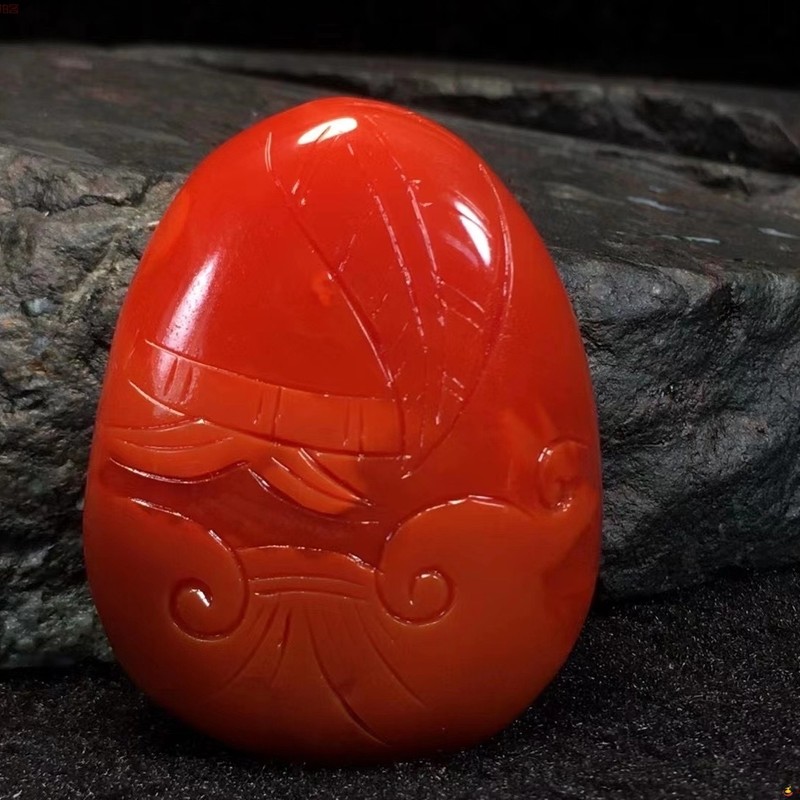 精选 九口料 南红 笑口常开 吊坠 品相如图 做工精细 颜色艳丽尺寸38*30*11毫米 重量19克。南红是指玉的一个贵重品种。南红是因其出产在中国南疆得名,包括云南、四川南部、青海、甘肃等。南红很早前已被人们开采利用,有人说古书里头称的所谓“赤琼”大多就是指的南红玛瑙。 南红玛瑙颜色鲜艳,质地细腻,非常漂亮。最早出现在战国年代。 据说大致在清乾隆年间,南红玛瑙就开采绝迹了,如今传下来的南红玛瑙都是汉到明的东西。新矿南红主要产地在四川南部的大凉山,云南保山亦有出产,但保山料因碎裂多,没有宝石级的矿石,宝石级矿料主要产自四川凉山彝族自治州。