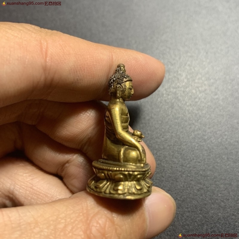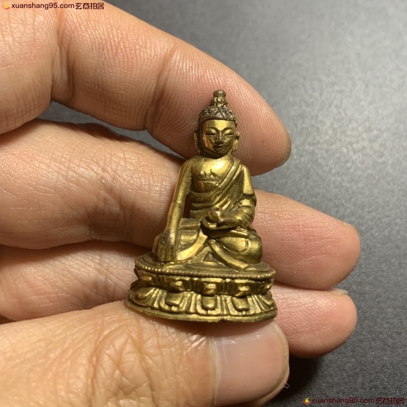 图录号127 清 释迦牟尼佛像 质地:铜 质量:23.4g 尺寸:34.2x23.4x23.4mm 清,质地,铜,23.4g,尺寸,34.2*23.4*34.4mm释迦牟尼佛像,全身鎏金,包浆熟美,品相一流,曾为修养老师收藏,收藏与供奉珍品,增值潜力巨大。