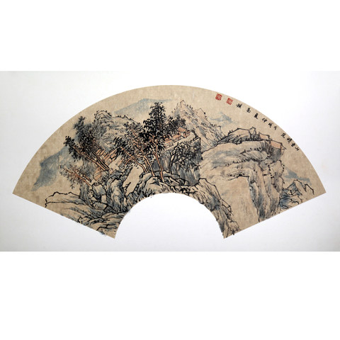 带合影中国美协会员 葛琪 《山水扇面》