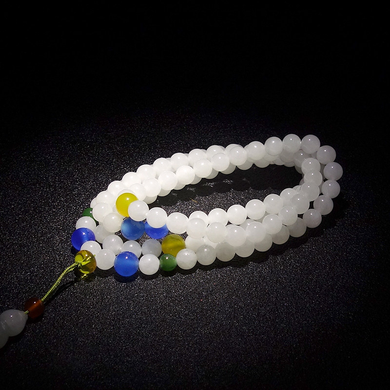 甄选 和田玉 佛珠毛衣链 料子细腻 做工晶细 尺寸7毫米 重量60克。秦始皇统一中国的时候,和田玉因产于昆仑山被称为“昆山之玉”,以后又因位于“于阗国”境内而被称为“于阗玉”。直到清光绪九年(1883年)设立和田直隶州时,才被正式命名为“和田玉”。 和田玉中的名品,是珍藏于陕西历史博物馆的西汉国宝级文物“皇后之玺”,其质地为新疆和田羊脂玉,是迄今唯一的汉代皇后玉玺,为首批禁止出国(境)展览文物 。2008年北京奥运会会徽徽宝“中国印”,也是采用新疆和田玉作为材料。