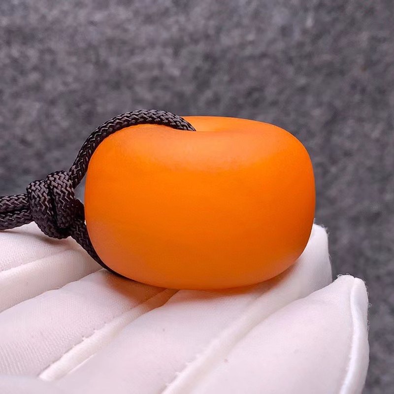 俄料 蜜蜡 饼子吊坠 造型十分晶振 端正 蜡纸厚实 尺寸37*23毫米 重量22克。蜜蜡为非晶质体。部分组织较疏松而又不含其他矿物的蜜蜡能浮于水(英*蜜蜡Amber一词自阿拉伯*,其原义即为“浮于水”的意思)。蜜蜡摩擦*生静电荷,能吸附纸片、铁屑等轻微物品,部分不摩擦亦带有静电荷,握之有“啜手”的感觉。蜜蜡是有机矿物,质地脂润,色彩缤纷,用途广泛,*值*卓,与其他自然宝石一样,享有“地球之星”的美誉。