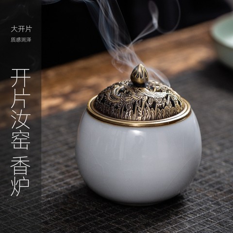 【汝窑香炉】汝窑盘香香炉小号日式手工景德镇陶瓷香薰炉室内茶道香道用具家用 汝窑 盘香炉 香道 茶道 月白汝窑 复古白搭:一个好看的香炉,改变不了香本身,但可以改变焚香的感受! 闲来无事 焚香品茗:怡神 养生 养心 龙凤纹 铜盖子 月白质感汝窑 大开片纹 紫口铁足 原矿材质
