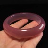 精选 帝王紫玉 手镯 颜色很美 成色晶莹剔透 荧光度好 内径62厘米 宽16毫米 重量61克。南红是指玉的一个贵重品种。南红是因其出产在中国南疆得名,包括云南、四川南部、青海、甘肃等。南红很早前已被人们开采利用,有人说古书里头称的所谓“赤琼”大多就是指的南红玛瑙。 南红玛瑙颜色鲜艳,质地细腻,非常漂亮。最早出现在战国年代。 据说大致在清乾隆年间,南红玛瑙就开采绝迹了,如今传下来的南红玛瑙都是汉到明的东西。新矿南红主要产地在四川南部的大凉山,云南保山亦有出产,但保山料因碎裂多,没有宝石级的矿石,宝石级矿料主要产自四川凉山彝族自治州。