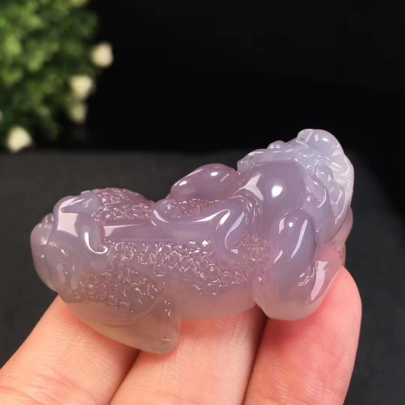 甄选 荔枝冻 冰紫色 招财貔貅 成色漂亮 雕工精细 佩戴效果很好 。南红是指玉的一个贵重品种。南红是因其出产在中国南疆得名,包括云南、四川南部、青海、甘肃等。南红很早前已被人们开采利用,有人说古书里头称的所谓“赤琼”大多就是指的南红玛瑙。 南红玛瑙颜色鲜艳,质地细腻,非常漂亮。最早出现在战国年代。 据说大致在清乾隆年间,南红玛瑙就开采绝迹了,如今传下来的南红玛瑙都是汉到明的东西。新矿南红主要产地在四川南部的大凉山,云南保山亦有出产,但保山料因碎裂多,没有宝石级的矿石,宝石级矿料主要产自四川凉山彝族自治州。