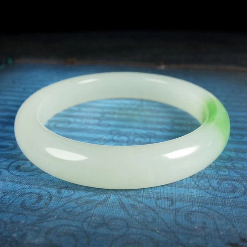 甄选 和田玉 翠青色 手镯 玉质温润 翠色迷人 色泽精美 密度过灯 收藏佳品。内径53毫米 重量39克。和田玉,“中国四大名玉”之一(其三为陕西蓝田玉、辽宁岫玉和河南独山玉)。传统狭义范畴特指新疆和田地区出产的玉石,以和田“子料”为代表闻名于世;广义的和田玉指软玉(真玉)。和田玉虽然因新疆和田而命名,但其本身不是地域概念,并非特指新疆和田地区出产的玉,而是一类产品的名称。中国把透闪石成份占98%以上的石头都命名为和田玉,都在国标范围内。 秦始皇统一中国的时候,和田玉因产于昆仑山被称为“昆山之玉”,以后又因位于“于阗国”境内而被称为“于阗玉”。直到清光绪九年(1883年)设立和田直隶州时,才被正式命名为“和田玉”。