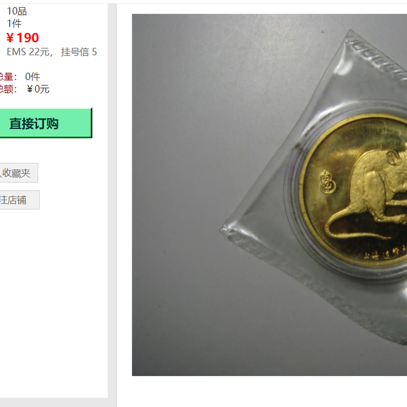 生肖鼠纪念章1枚;材质:“黄铜”;开盒装;单件销售;无面值;非流通纪念章;由上海造币厂1996年监制。正面捧着松果的鼠生肖,以及丙子年鉴和上海造币厂监制字样;背面中间方形中一个鼠字与年份和造币厂印记。鼠生肖也是财的象征!纪念章大小、厚重、详见下图尺寸。没有氧化;没有霉点;没有大磨损,边道锐利;保存完好;品相95%。送盒!目前市价在190元左右一枚,还不包含运费,比对见下图。因为是铜质受国际期货影响,价格有所提升。卖家为换藏将多年收藏的藏品进行置换。此款买家违约,再次上拍,喜收藏此款纪念章爱好者,莅临光顾*参拍!