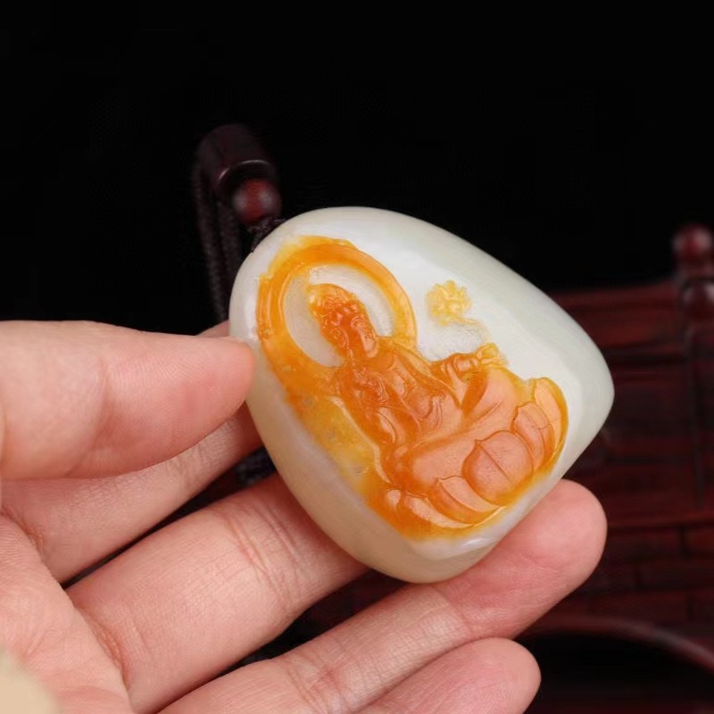 和田玉【持莲观音】挂件
