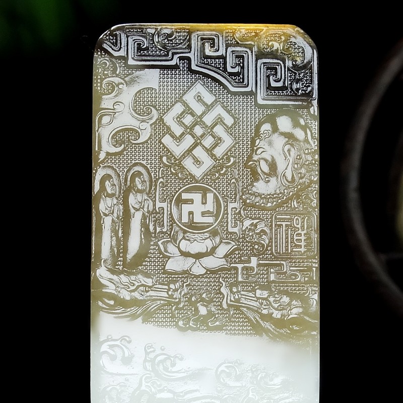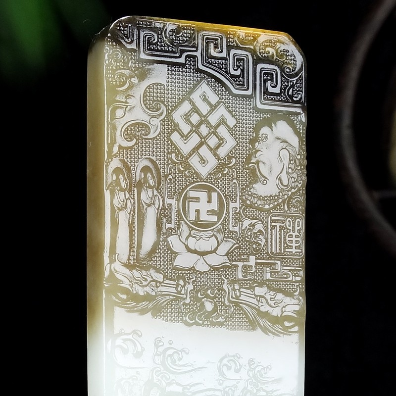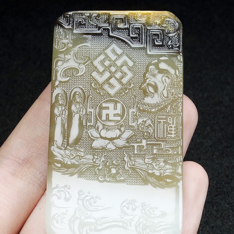 参禅悟道和田玉三色籽料玉牌