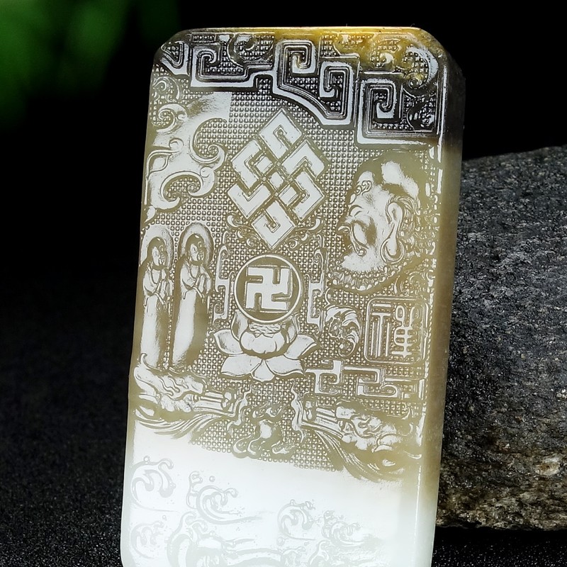 3. 竞拍详细 - 参禅悟道和田玉三色籽料玉牌