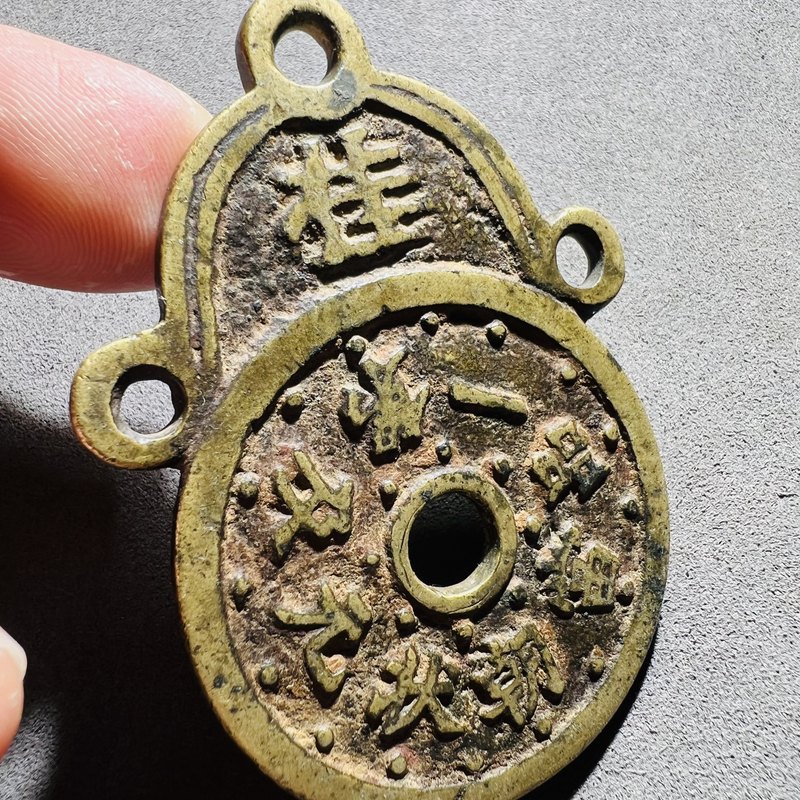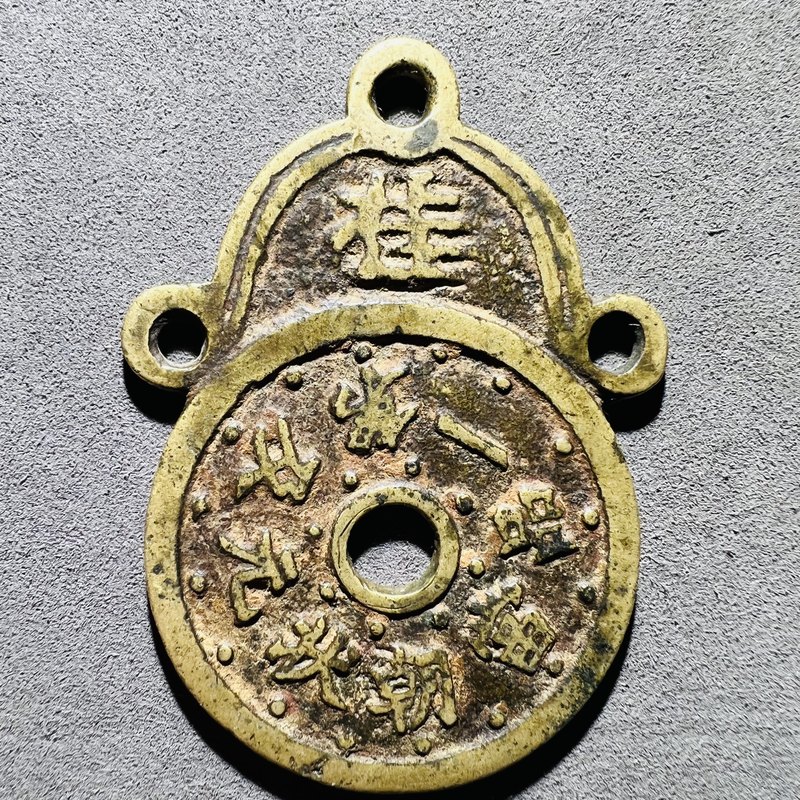 图录号021 清 状元及第挂花 质地:铜 质量:42.8g 尺寸:70.3x51x3mm 一品当朝状元及第花钱,传世品相,字口图案清晰,寓意美好,传世黄亮包浆,十分喜人,推荐收藏;