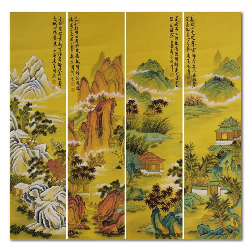 【大千画派第三代传人】——当代*画家周金阊先生创作精品《四季平安四条屏》