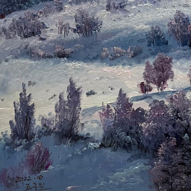 原创朝鲜油画可合影 赵主日 《雪景》