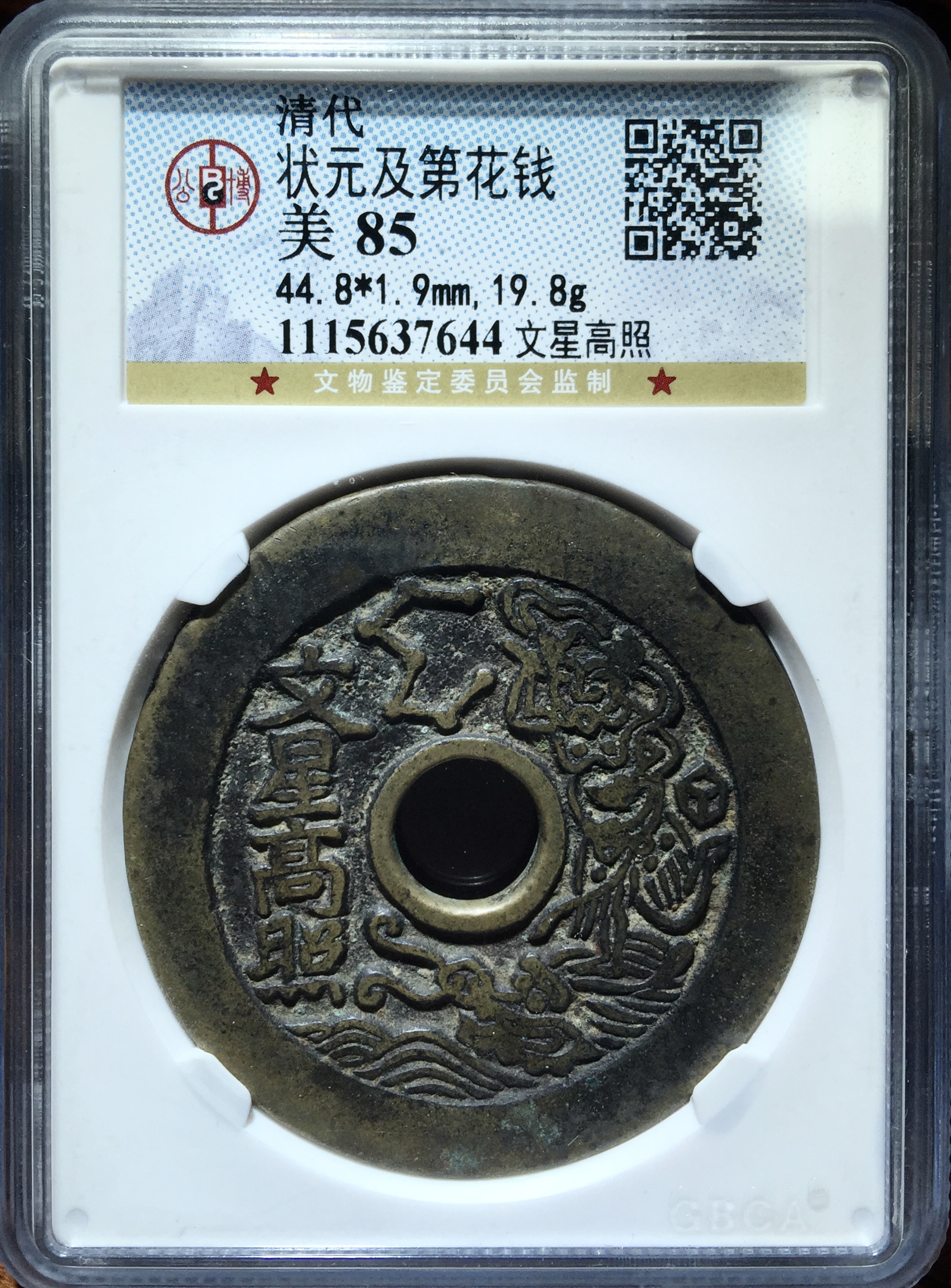 备注:此枚钱币已评级入盒,包浆温润,磨损自然,详细品相、评分、内容介绍如图所示,值得收藏;