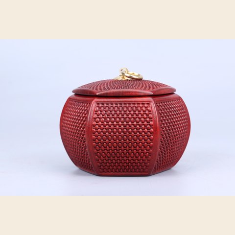 血檀 茶叶罐 雕工精细 料子一流 尺寸直径14厘米 高12厘米 血檀与紫檀相近,这是迄今为止已知的木材中最接近紫檀的。血檀的质感、纹理、颜色、比重都与紫檀*为相似,且有的导管细小扭曲,存在金星。近年来将血檀当作紫檀购买的人众多,很多行家里手冈大意在购买原料时未经开窗、打磨,也没有对气味进行确认而打眼。血檀和紫檀最大的区别在于血檀经打磨后表面的光泽不及紫檀,在气味上也有较为明显的区别,经燃烧后则更加明显,紫檀是淡淡的清香,而血檀则无明显香气。