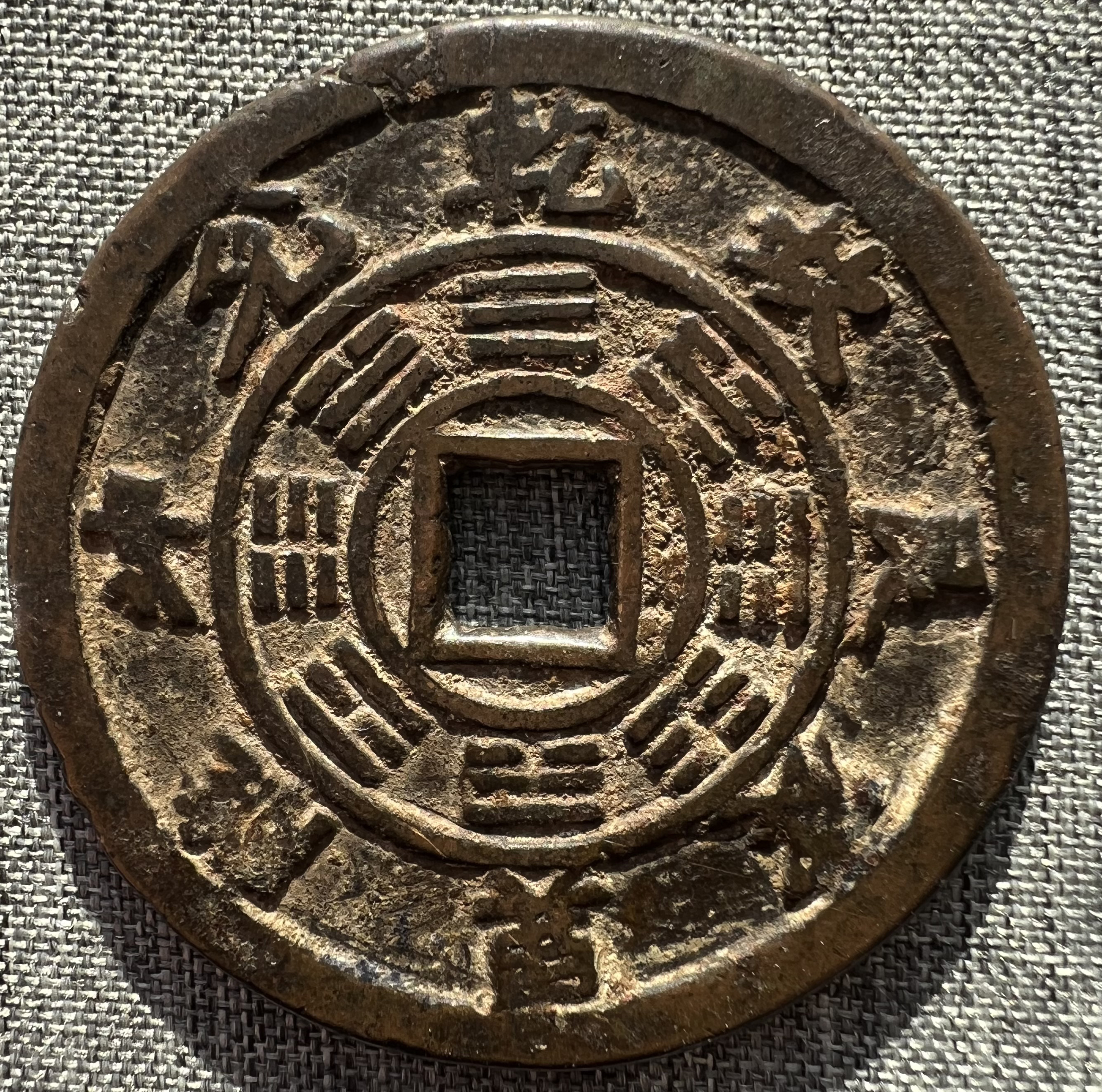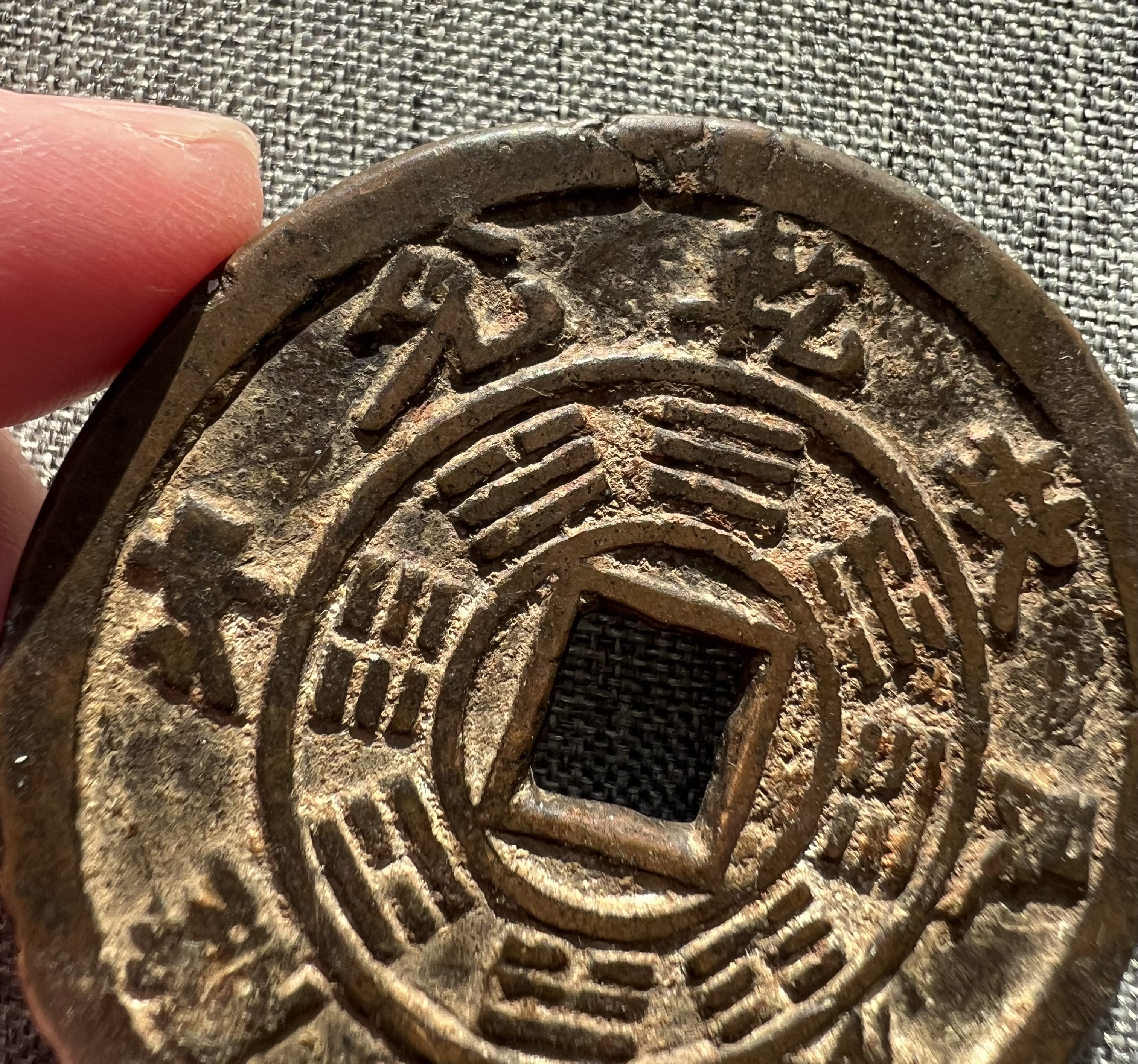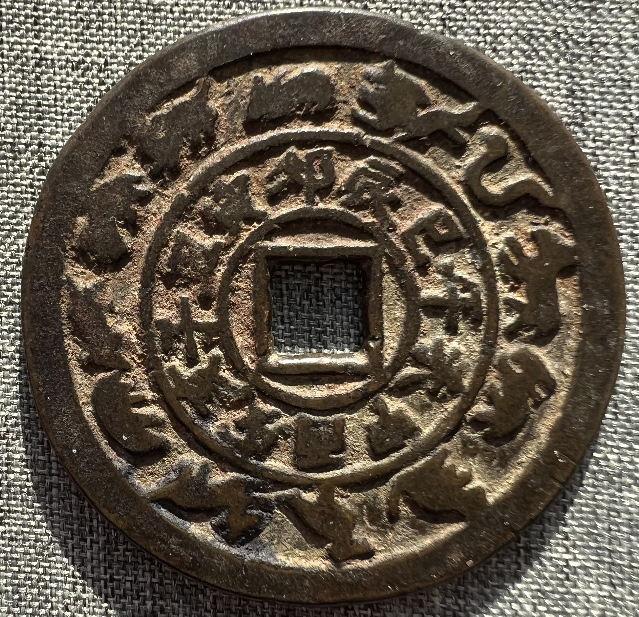 品相说明:如图钱体边缘有铜水流动不足造成的铸痕,此现象在贵炉花钱中常见。声音清脆。