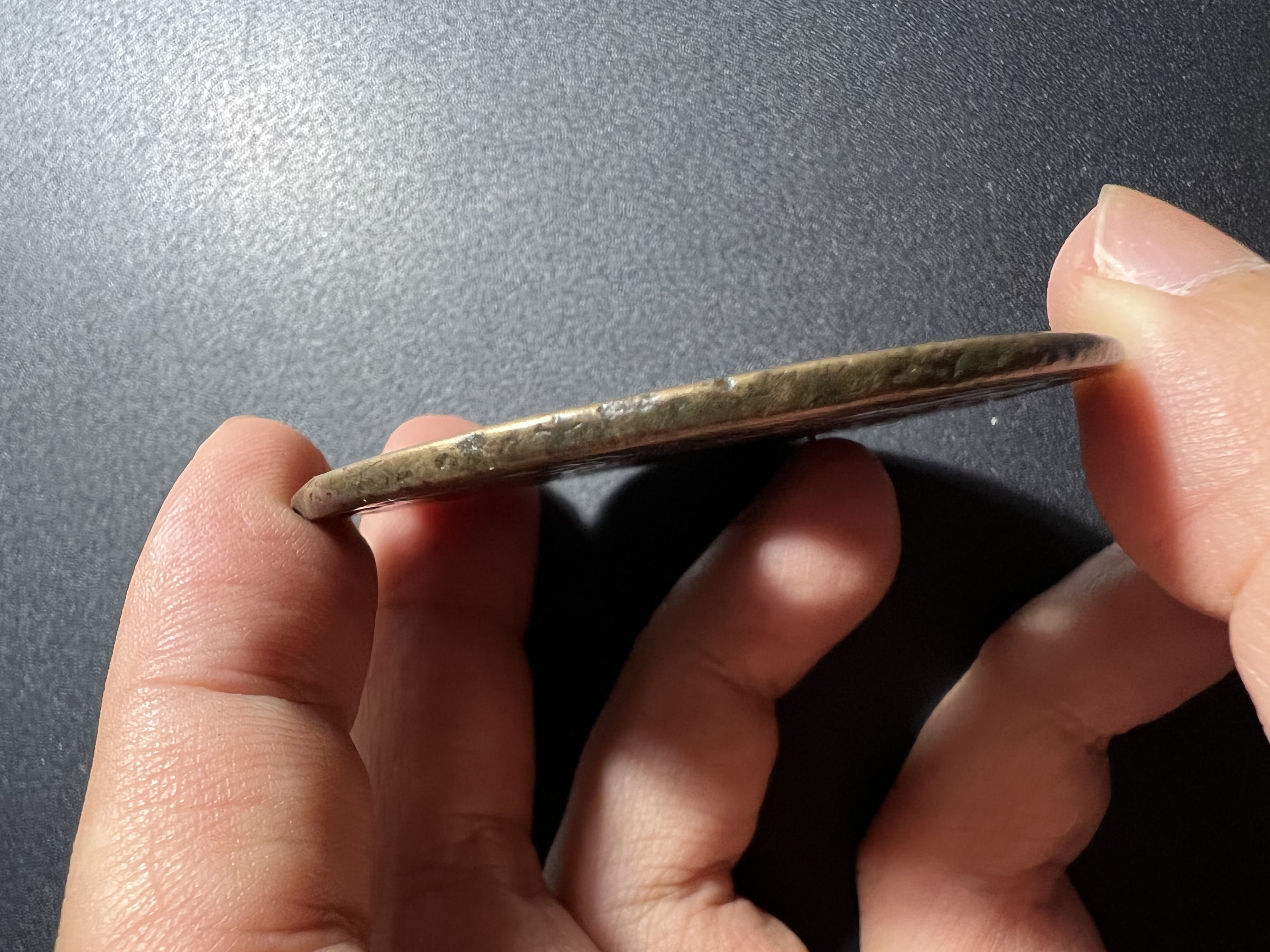 品相说明:底章有一因铜水不足所致的小沙眼,此钱以前有上挂,老磨~声音很好;