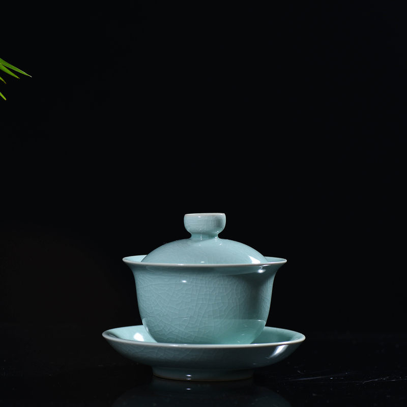 汝瓷 天青釉 三才盖碗