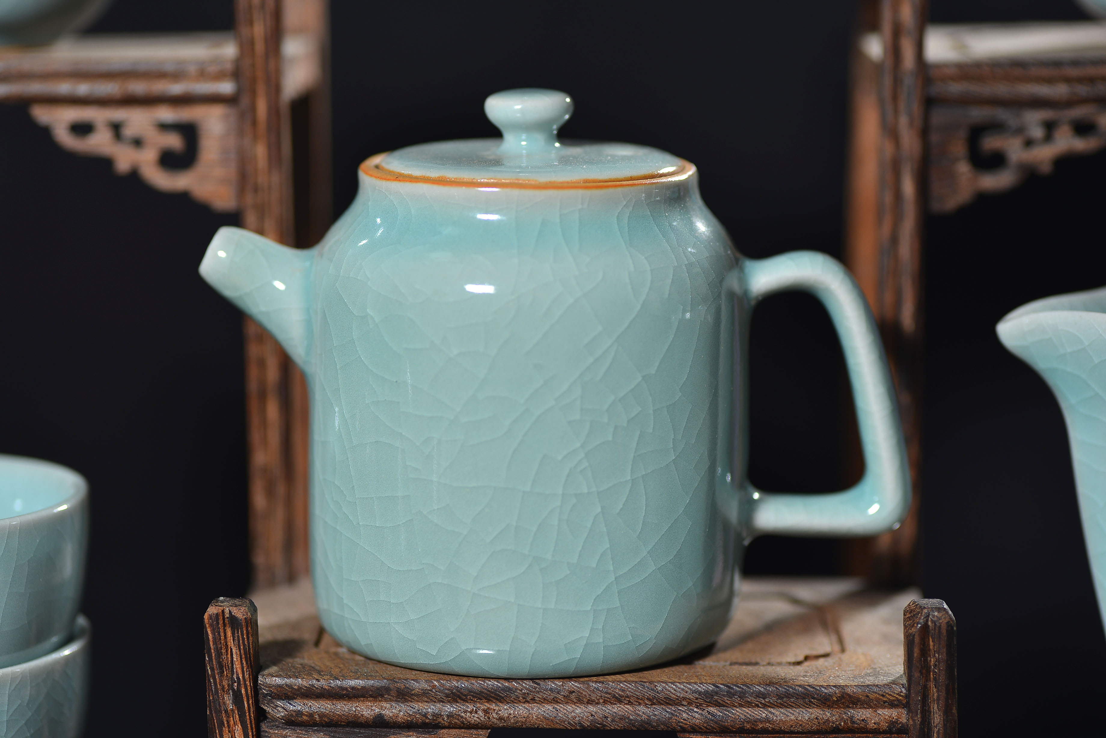 清凉寺仿古釉天青色 井栏茶具套装 井栏壶容量200毫升 公道210毫升 杯子50毫升。清凉寺汝瓷是中国北宋时期的主要代表瓷之一,属于五大名窑之一。清凉寺汝瓷的历史可以追溯到北宋时期,当时的宋王朝为了满足宫廷的特殊需要,设立了汝官窑。这个窑场生产的汝瓷以其独特的美学风格和高*的制作工艺而闻名,被视为青瓷之典范。清凉寺汝官窑遗址是在上世纪被发现的,这一发现揭开了汝官窑消失的千古之谜。自1987年以来,河南省文物考古研究所对清凉寺汝窑遗址进行了多次发掘,发现了大量重要的烧造设施和汝窑瓷器标本。清凉寺汝瓷的艺术特色体现在其独特的制作工艺和美学风格上。它以其工艺精湛、造型秀美、釉面蕴润、高雅素净的丰韵而独具风采。汝瓷的制作工艺包括使用名贵玛瑙为釉,釉色独特,随光变幻,呈现出“雨过天晴云破处”“千峰碧波翠色来”的美妙效果。此外,汝瓷的胎体厚重,釉厚而声如磬。汝瓷的形状古朴大方,器表呈蝉翼纹细小开片,具有“梨皮、蟹爪、芝麻花”的特点。这些装饰手法使得汝瓷不仅美观而且富有变化,被世人称为“似玉、非玉、而胜玉”。